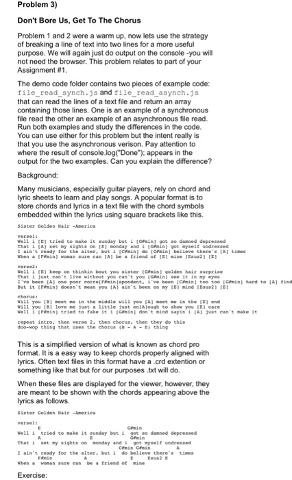 Solved Problem 3 Don T Bore Us Get To The Chorus Problem 1 Chegg Com